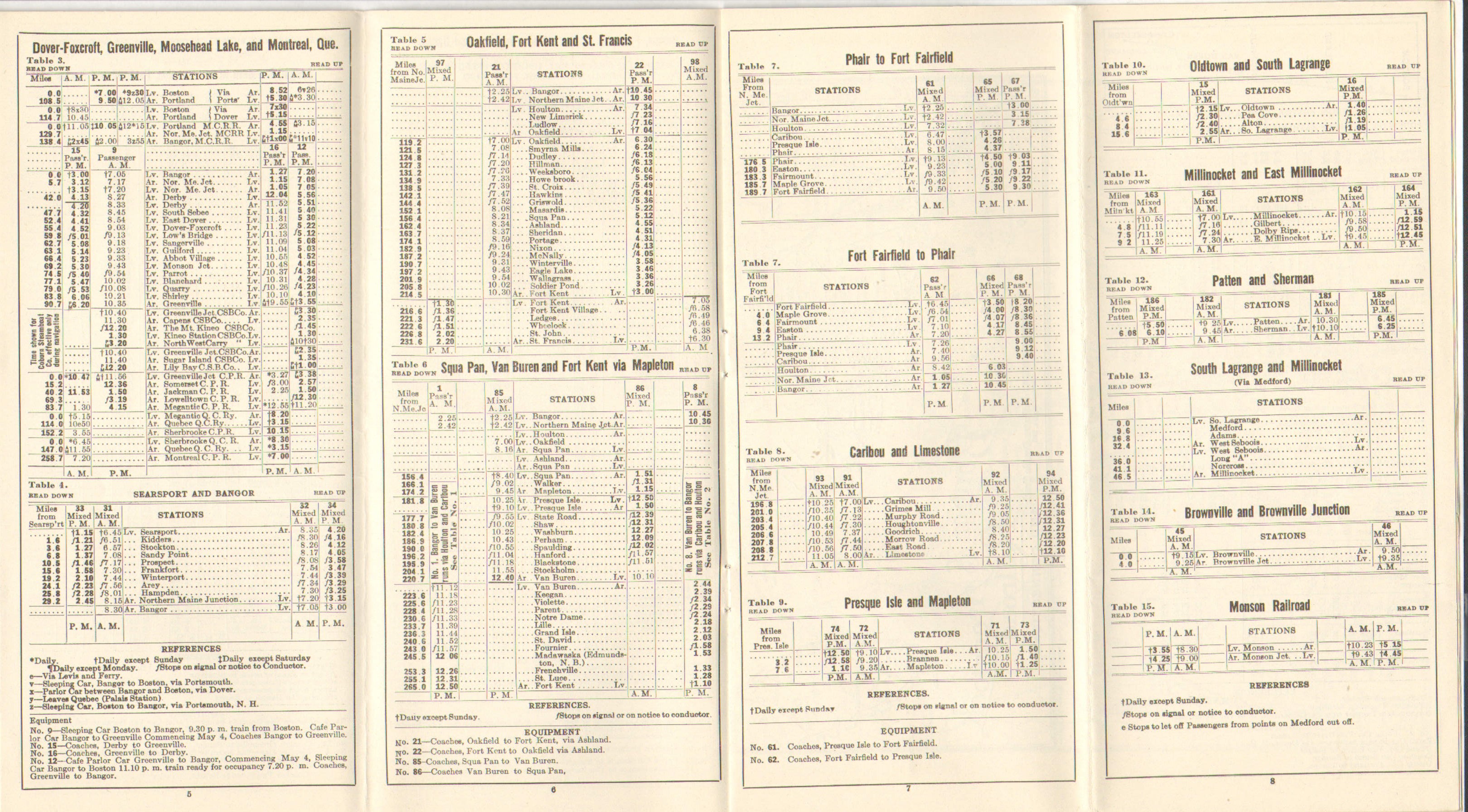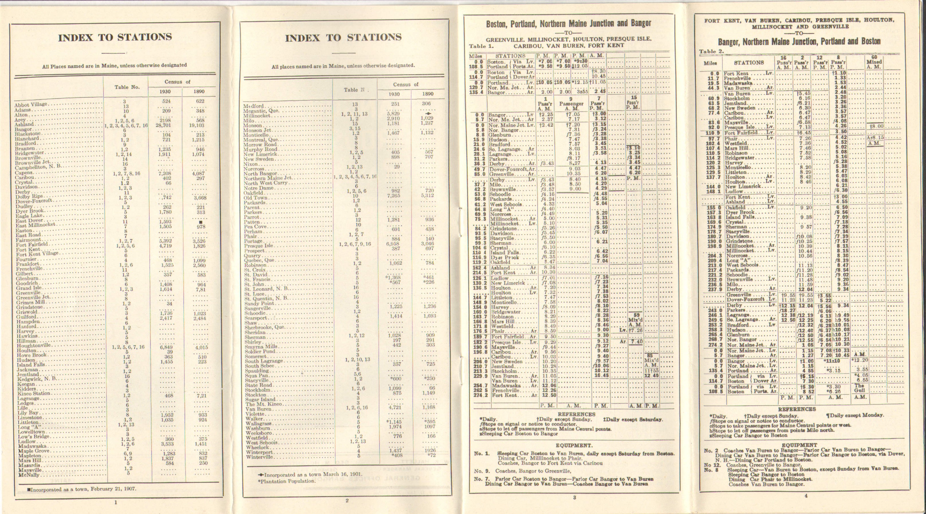An interesting and more useful version of the census data table that has been in these timetables for literally decades at this point now includes the portions of the timetable where one can find service to this station. This table is now on pages 1 and 2, much larger and provides something directly relevant to the railroad traveler. Need transportation to Solder Pond? Look at table 5. Previous timetables would have you flipping back and forth looking until you stumbled onto the name you were looking for.