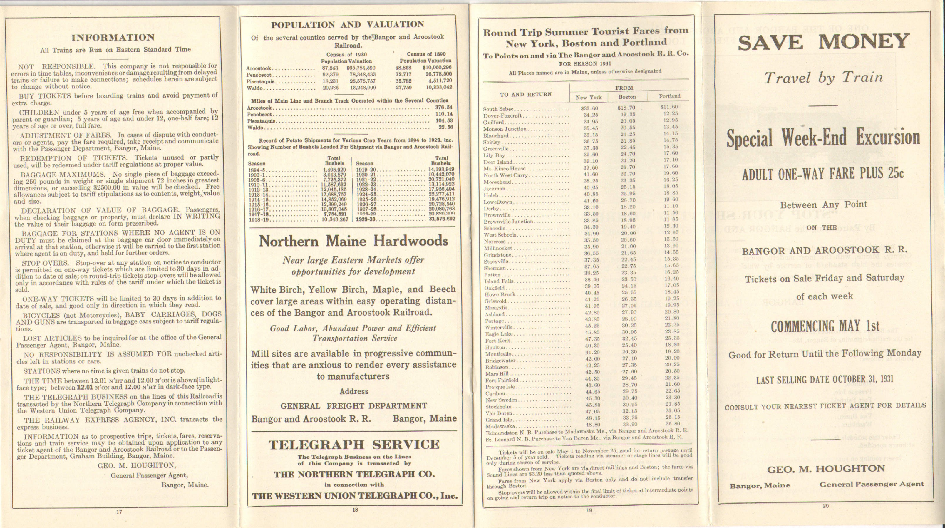 Summer and weekend rates are still being pushed, the railroad is still trying to recruit tourism from New York, Boston and Portland. Overall, about 18 months after the Crash of 1929, not much has changed.