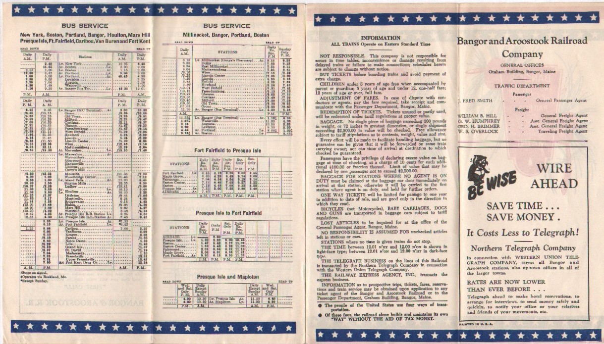 As one would expect, with only a bit more than two months difference between this and the previous timetable - very little difference is to be expected. The biggest seems to be that the Patten - Sherman - Island Falls run has been replaced by buses. Other than that, very little seems to have changed.