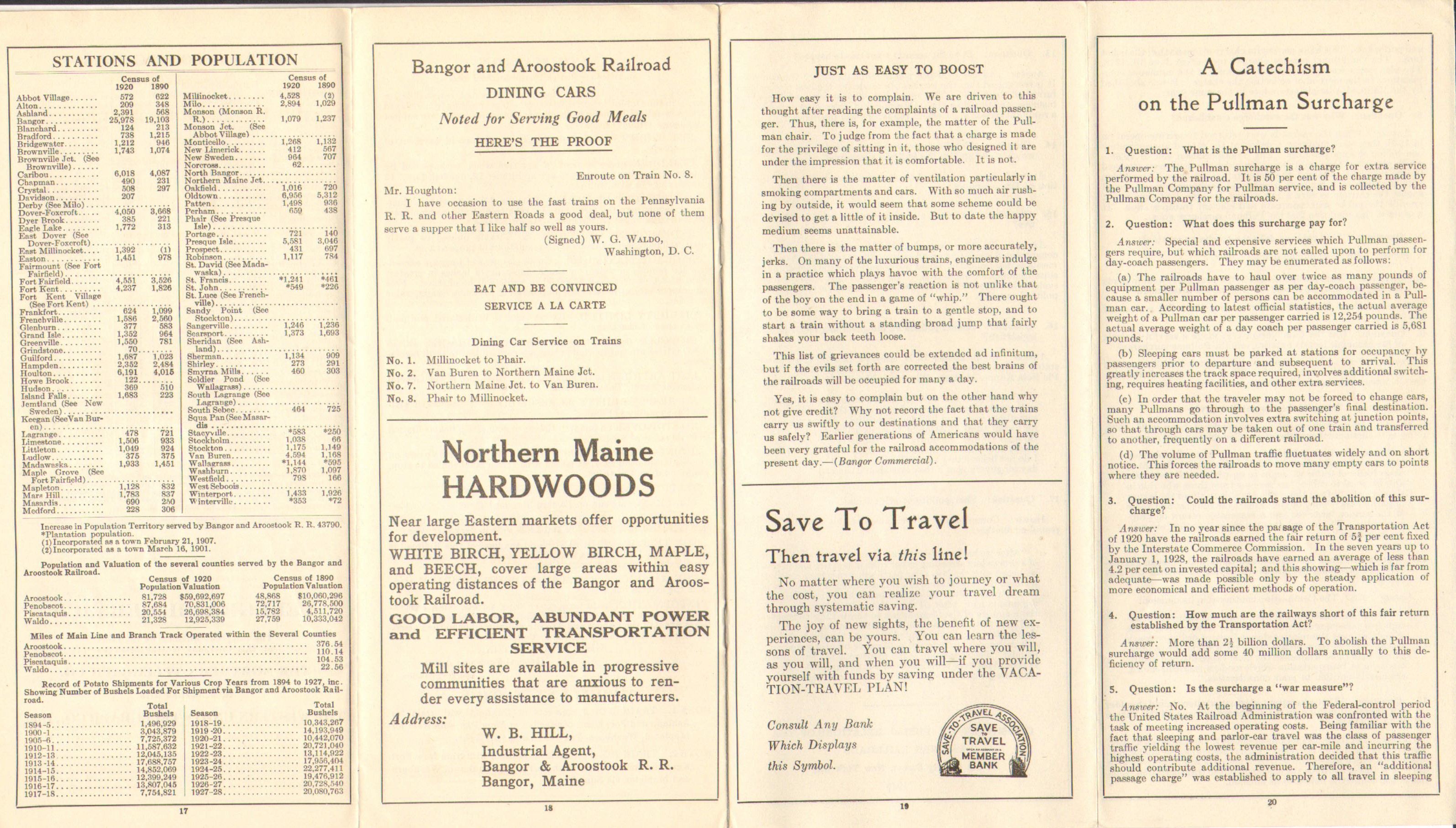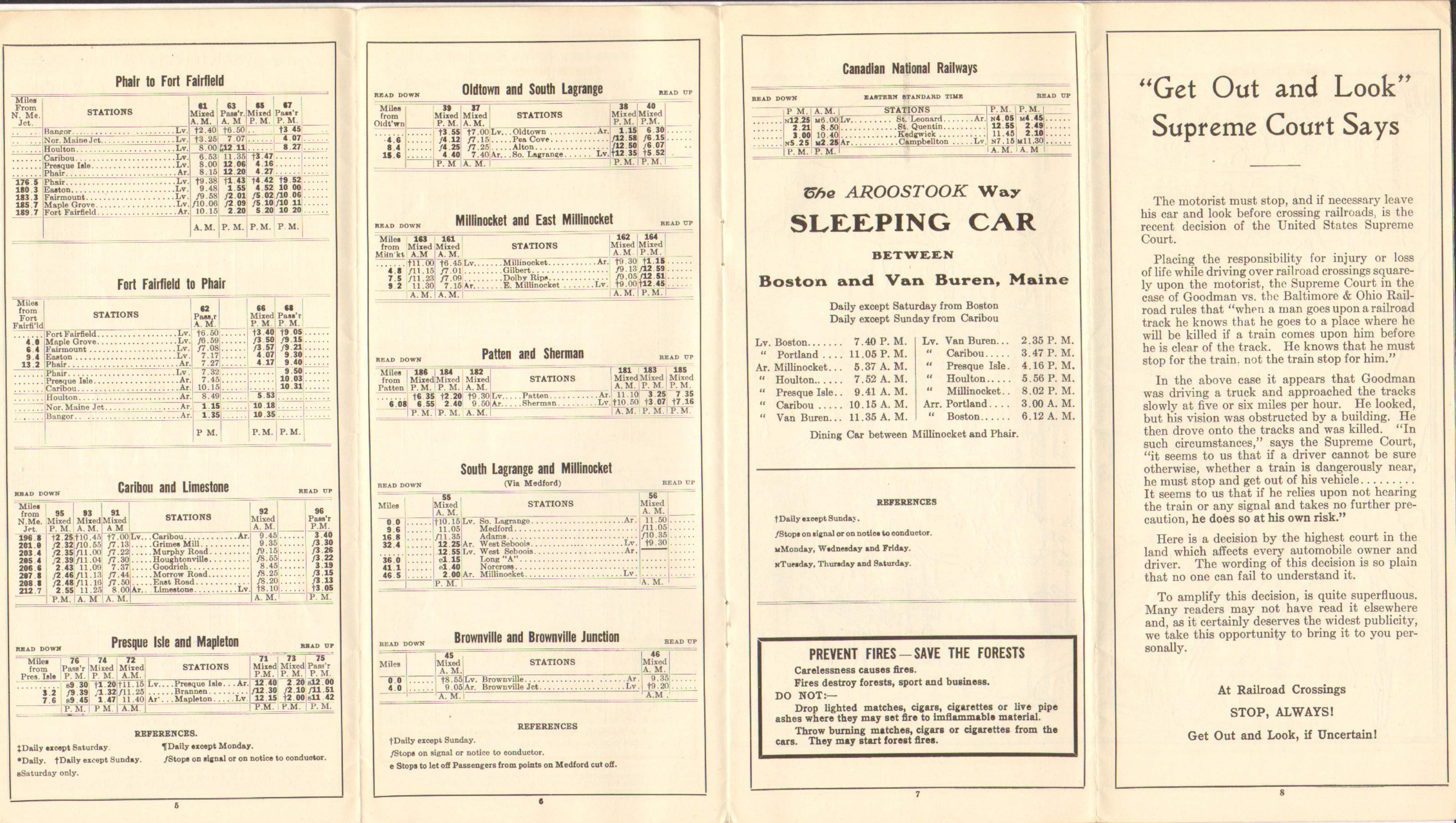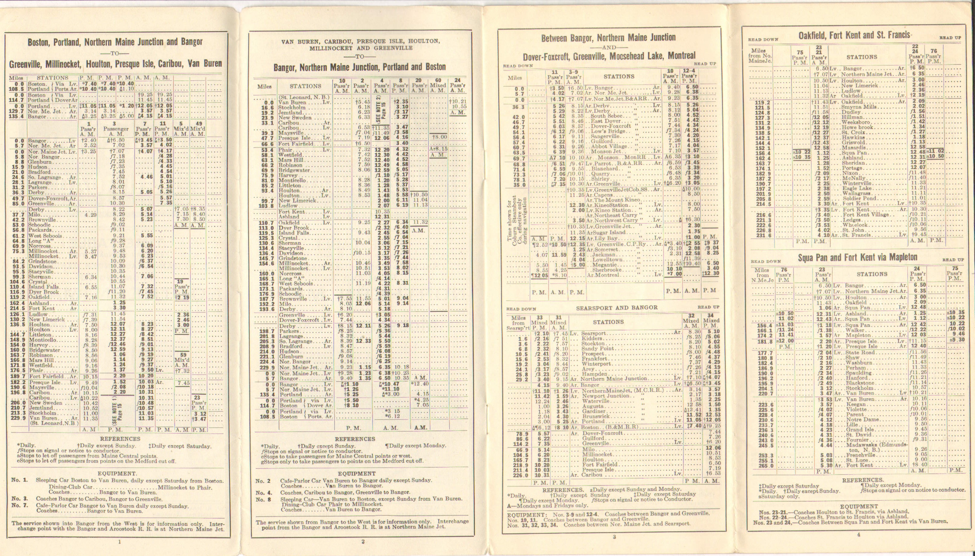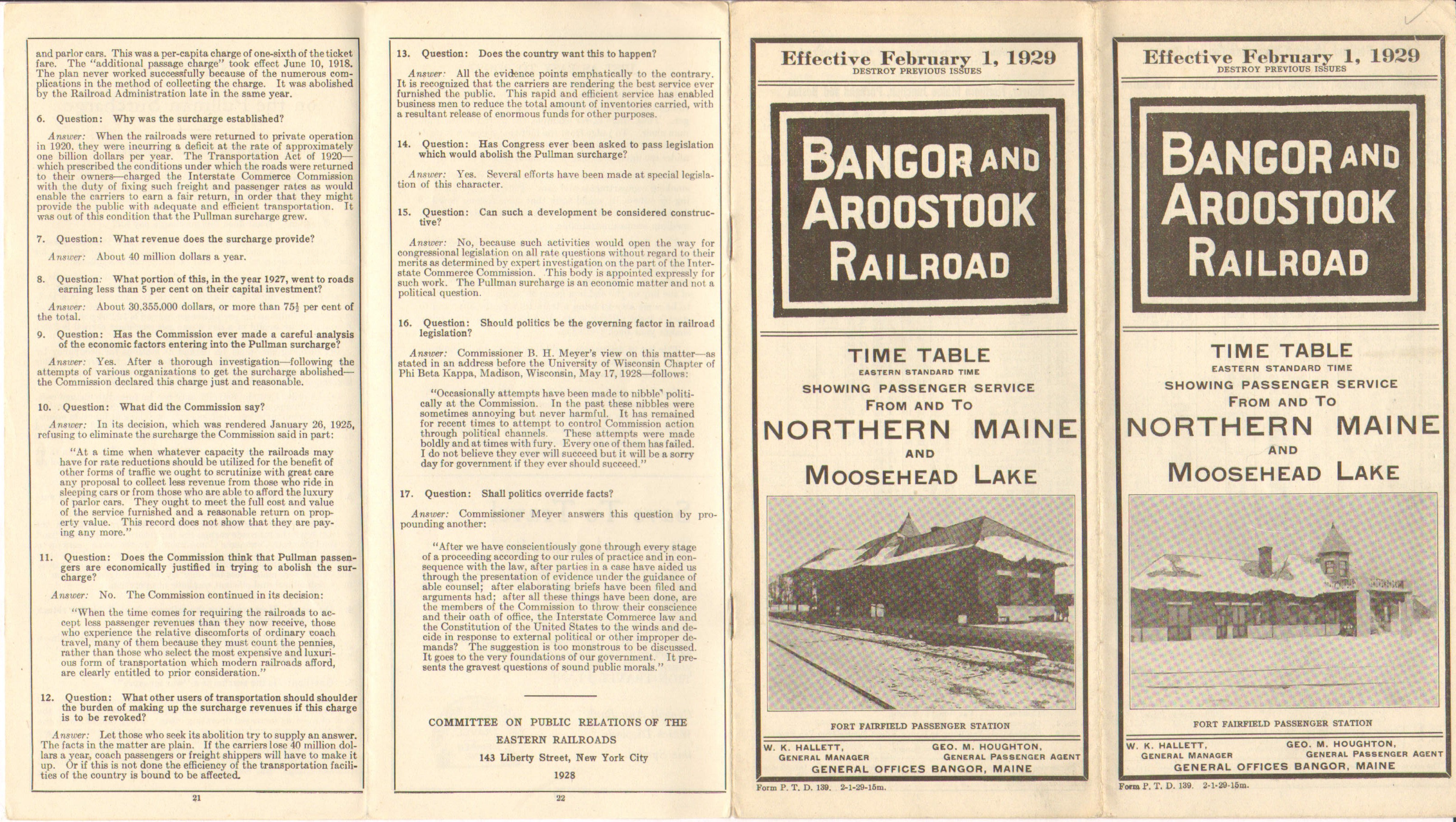 Continuing the format from the previous timetables, the photos this time are of Fort Fairfield station. Very little other than the photos on the covers seems to have changed from the previous timetable, even the Pullman Surcharge Catechism is still there.