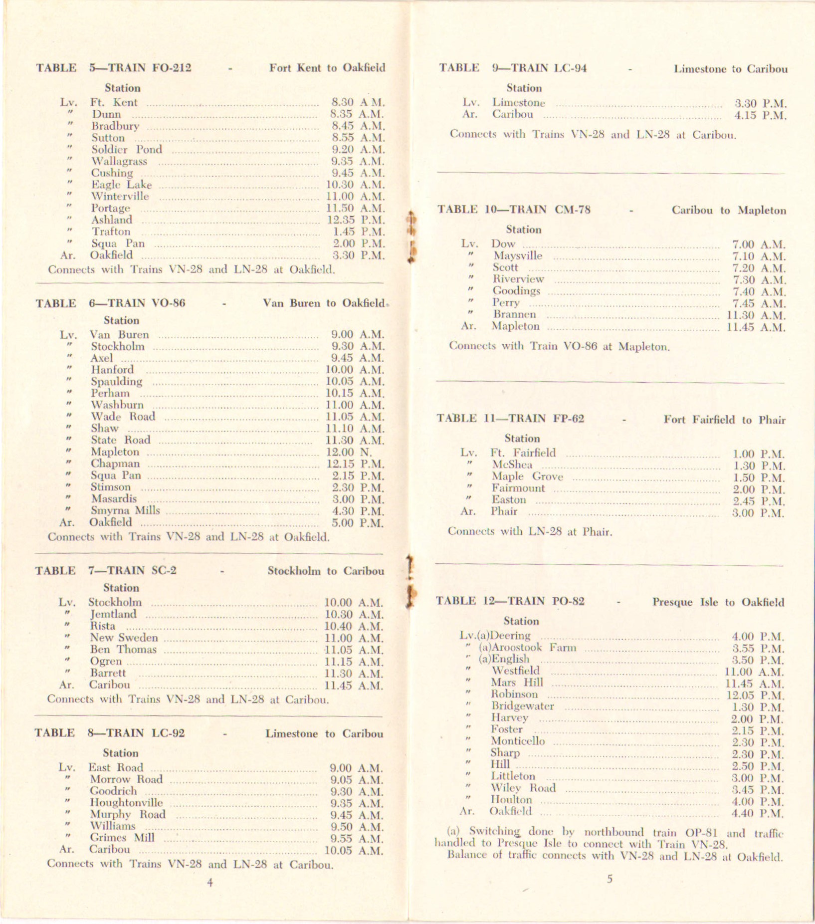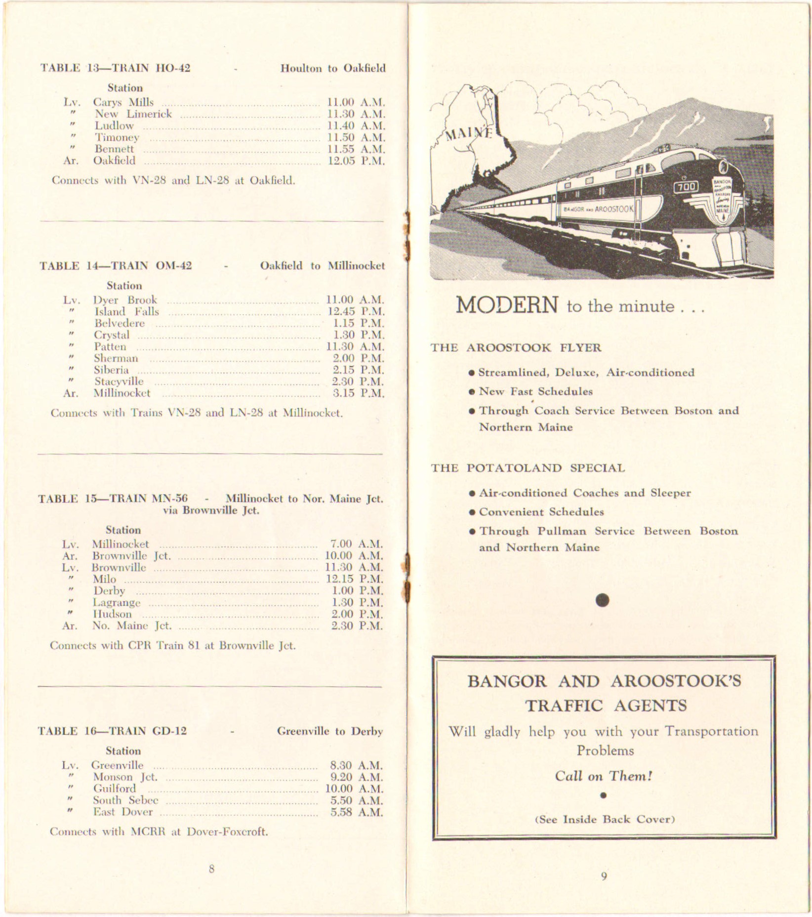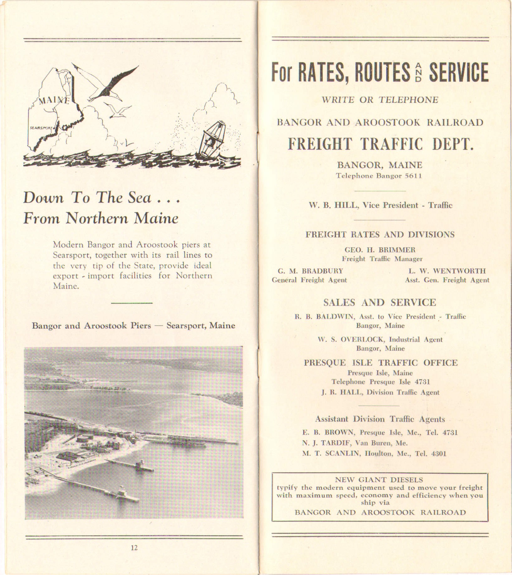 Public passenger timetables are fairly common, but a railroad published freight train schedule is somewhat rare. This is the third one of these produced by the railroad. Perhaps one of the greatest types of documents for those trying to understand traffic patterns produced by a railroad. It is interesting to note that there are no less than three Southbound trains to Northern Maine Junction, indicating just how much traffic goes out through the Maine Central. Interestingly, although the port of Searsport is specifically mentioned on page 12, the schedule pages do not indicate any regular scheduled service to Searsport. Interestingly, the 1954 Freight Train Schedule (Number 6) also ignores Southbound freight to Searsport, but does include a note about it in the Northbound section. The previous Freight Train Schedule, November 1, 1950, also neglects the southbound and has the Northbound mentioned.