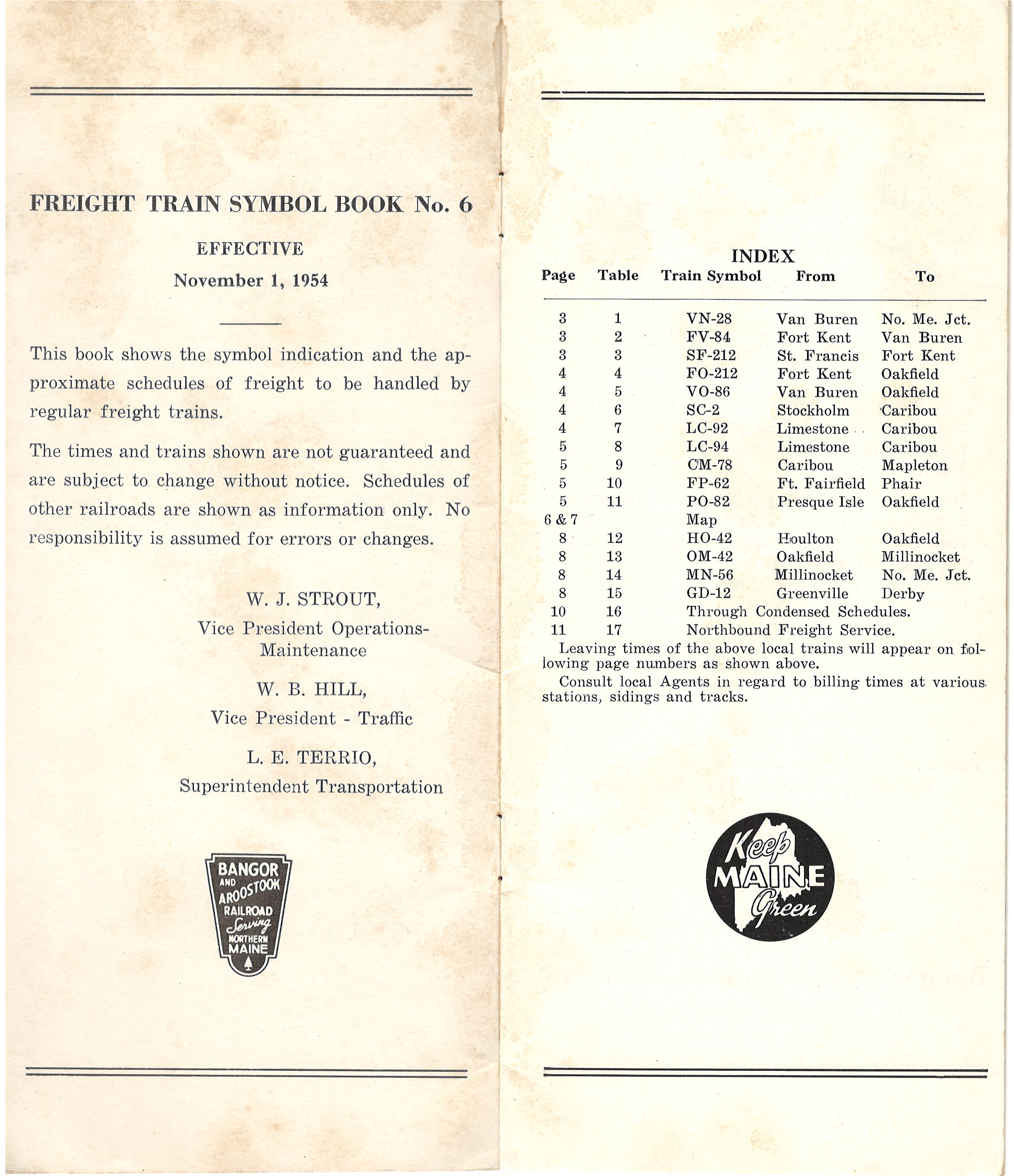 Timetable - Freight Train Schedule - November 1, 1954