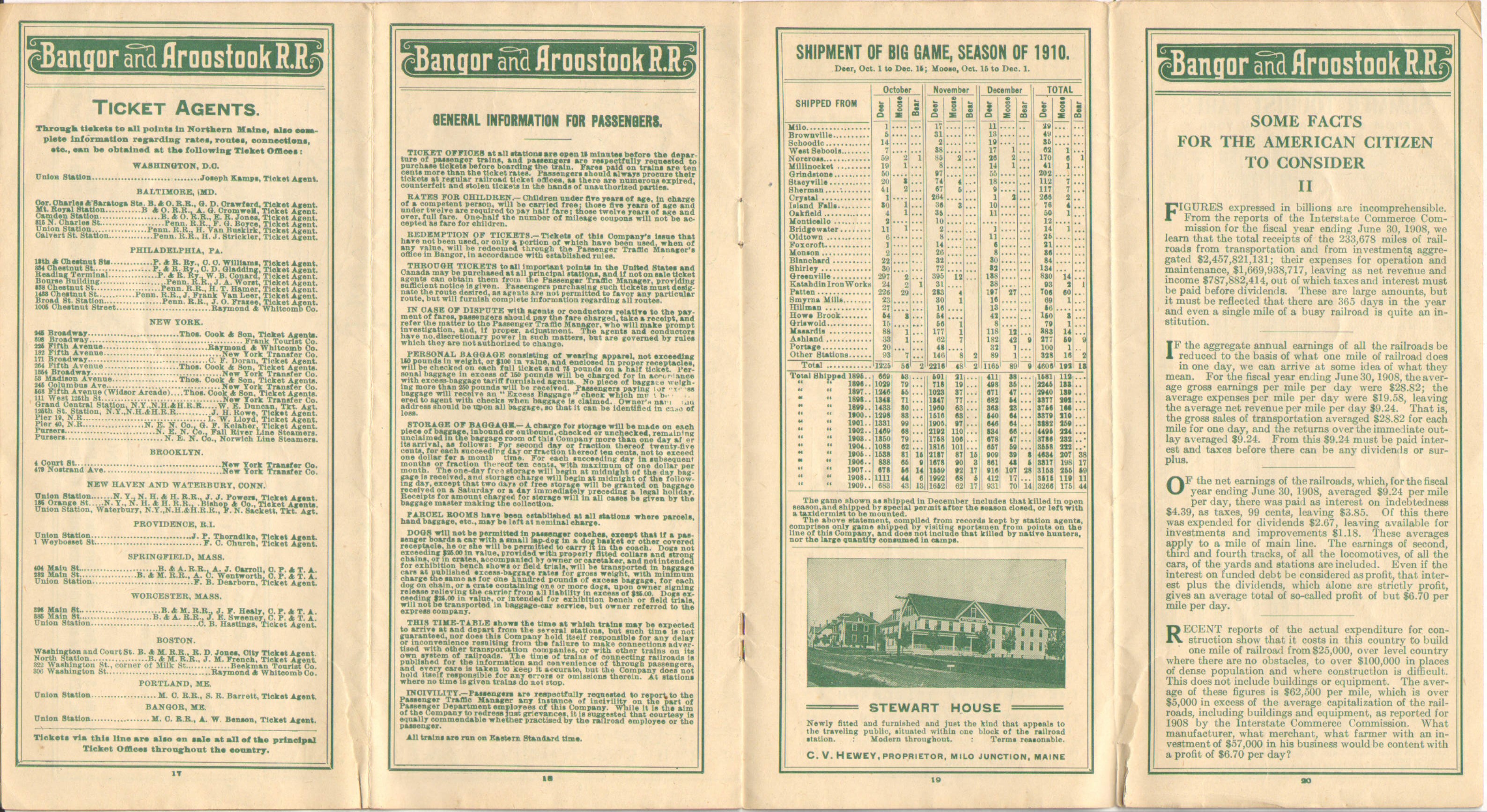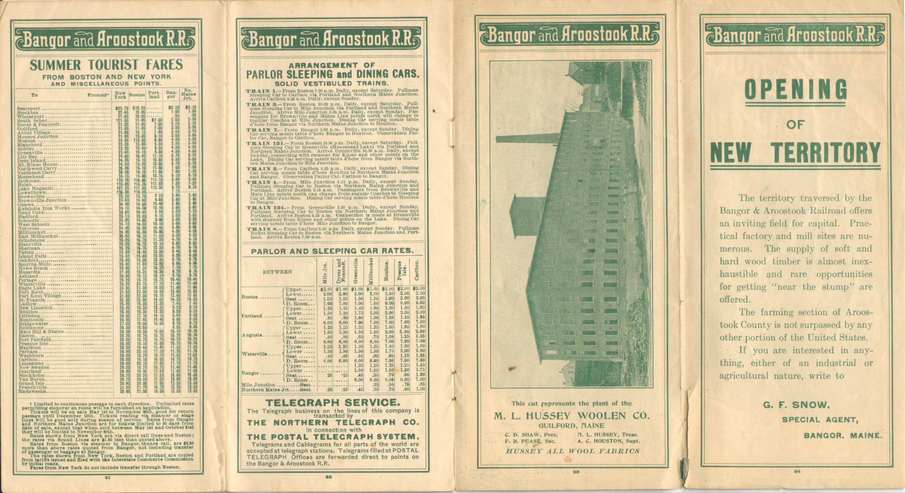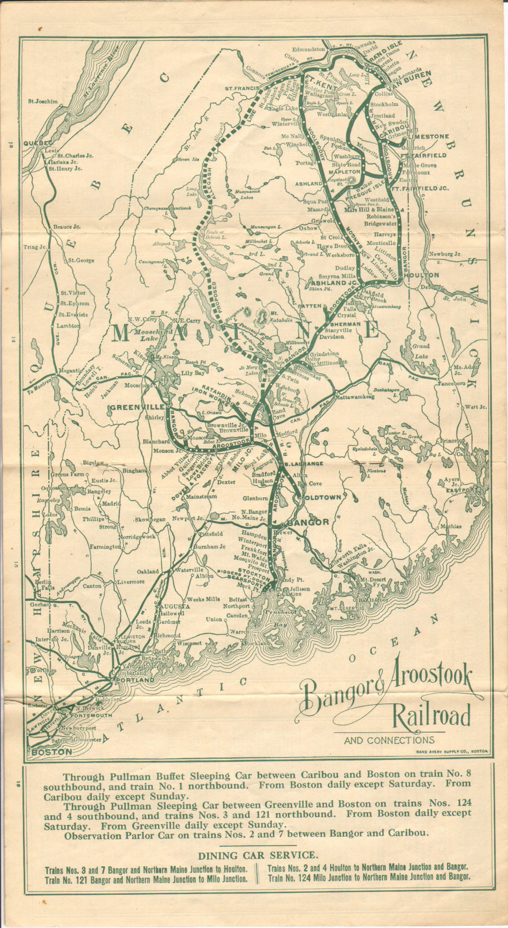 As one would expect, there are not a huge number of differences between the previous Timetable, late in 1910 and this one mid 1911. Although not changed on the map, in the timetable listing, 'Ashland Junction' has been replaced with 'Oakfield Junction'. It appears even in a slightly different font - indicating a change. This would of course later be known simply as Oakfield, a yard which continues to exist to this day. Map wise, we are still promoting the 'Allagash Line' that would never be built.