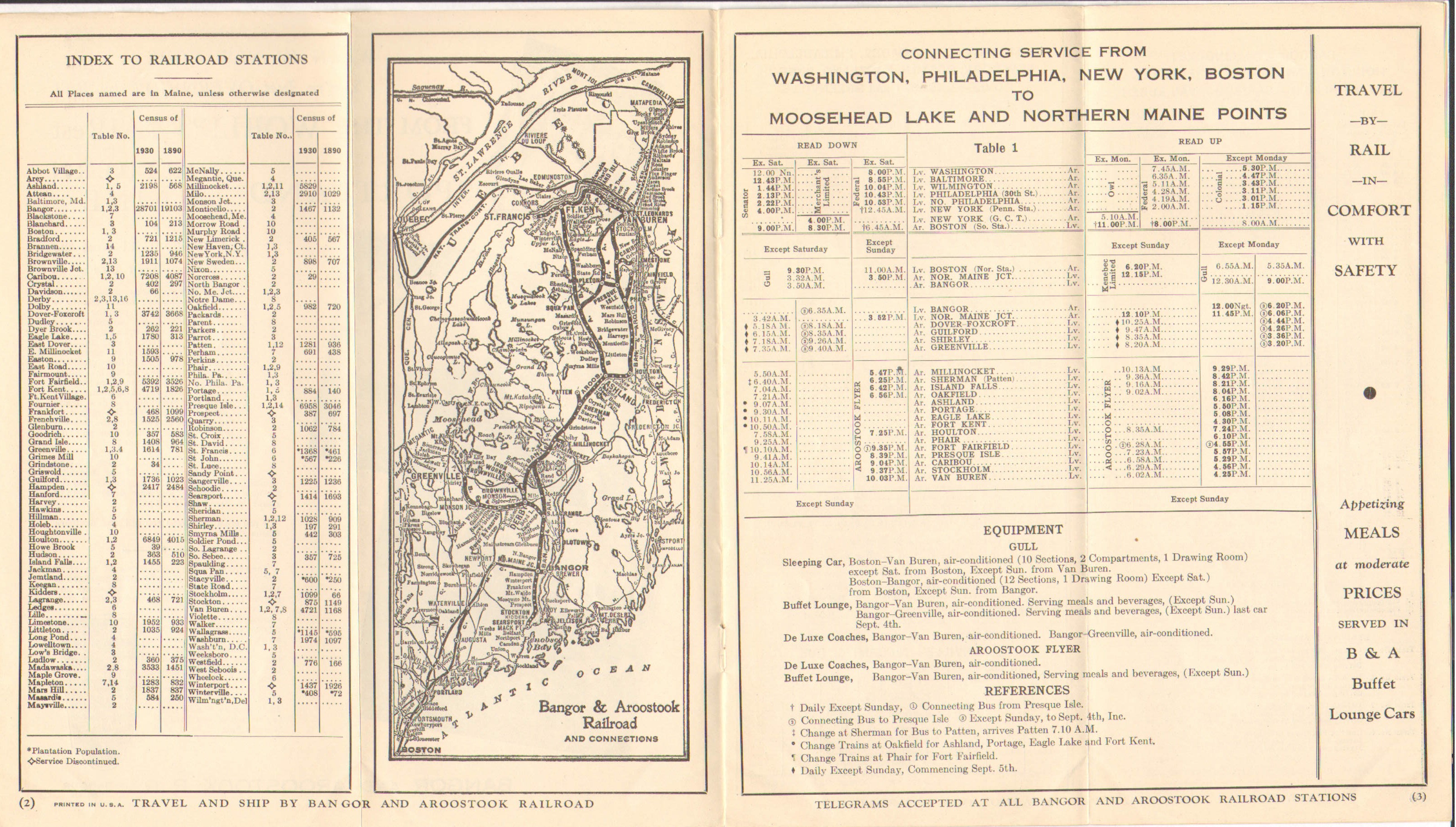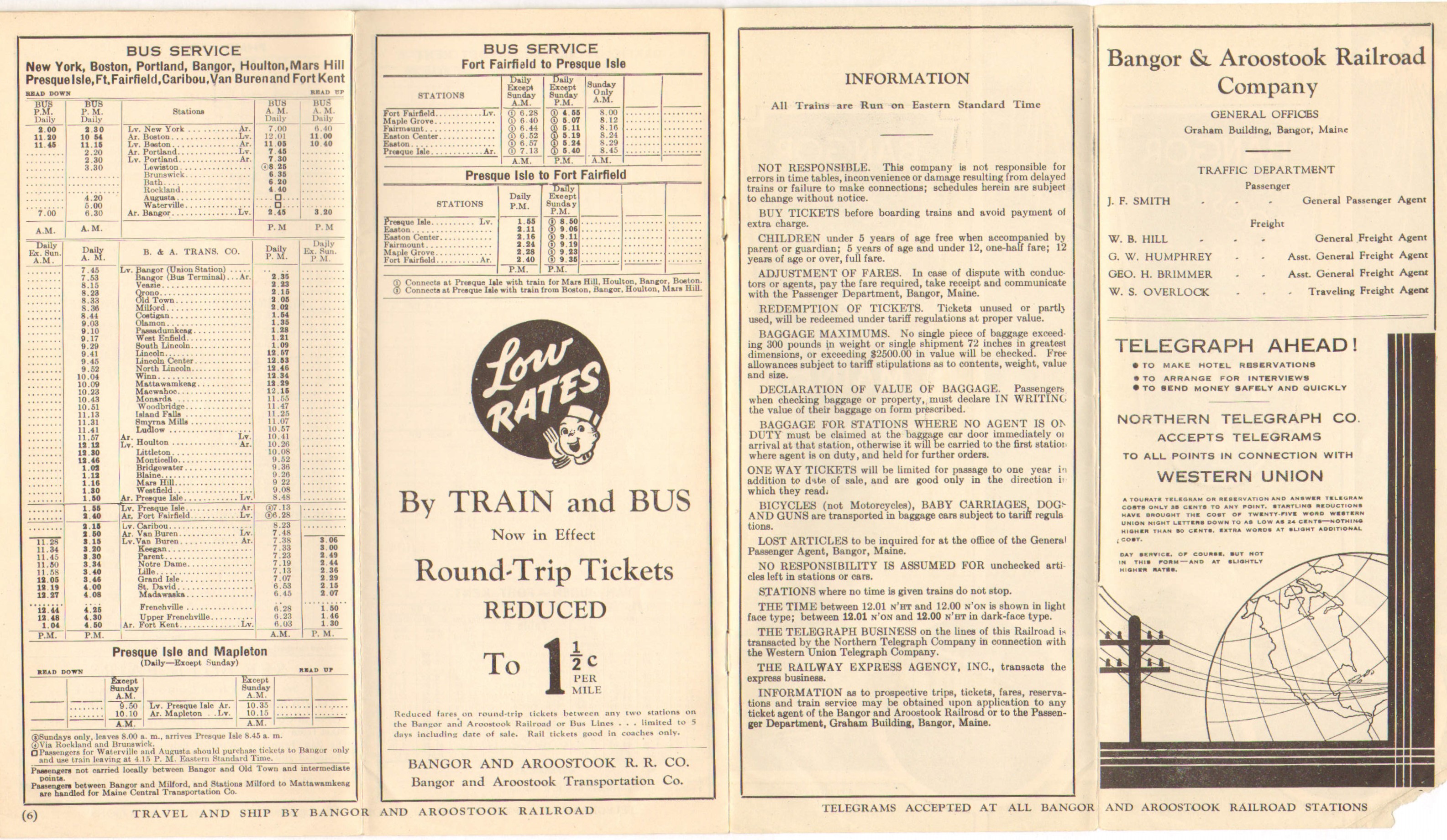 Very similar to the previous timetable, from only about three weeks earlier, the biggest difference between the two seems to be the addition of an advertisement in the bus section for Low Rates of only 1.5 cents per mile on round trip tickets. Although in the bus section, it applies to both bus and rail.