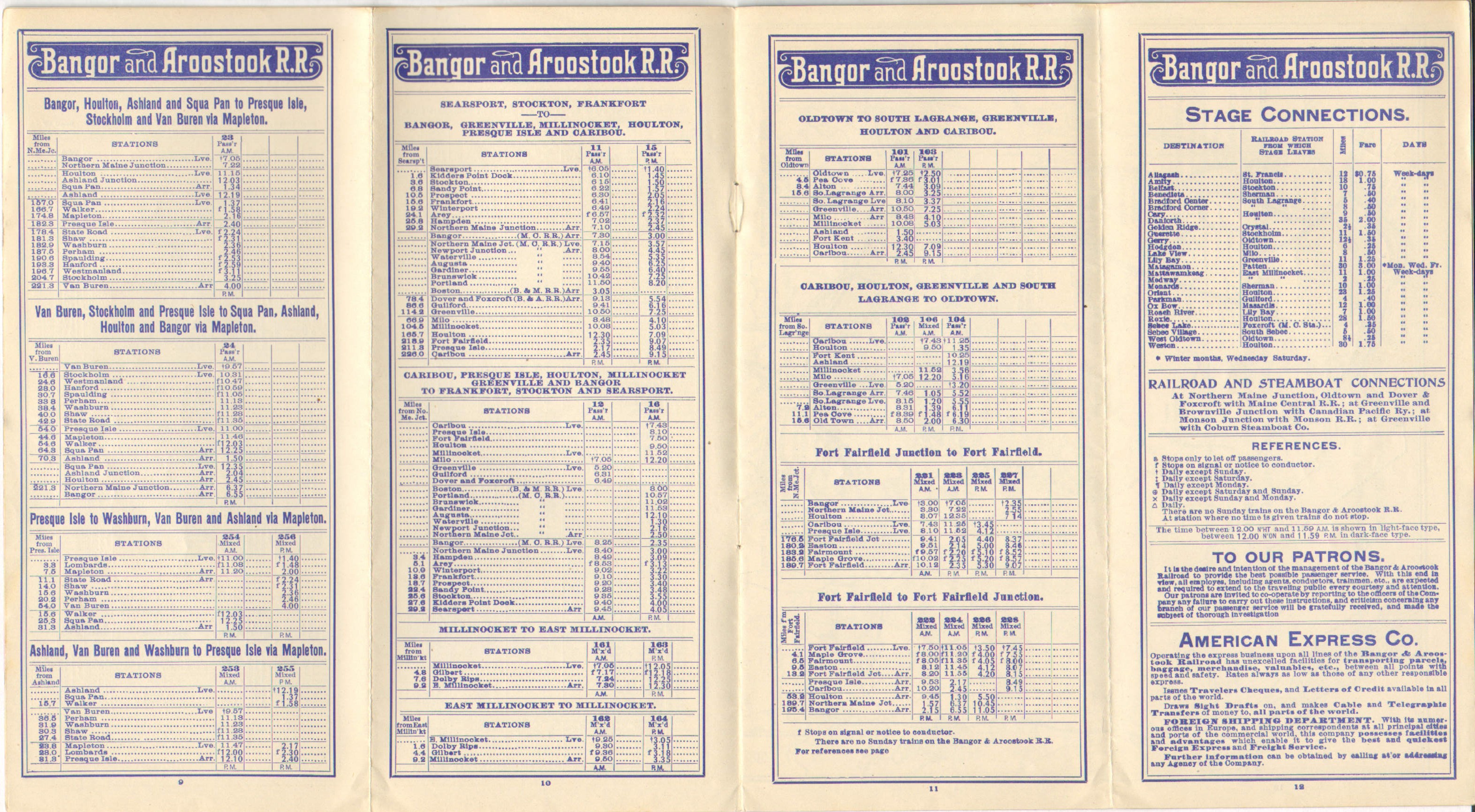 Going into effect less than two months from the previous one in this collection, few changes have taken place between this Timetable and the last. The Ashland Junction name remains, Oakfield Junction is also present and they are listed as only 1 mile apart.