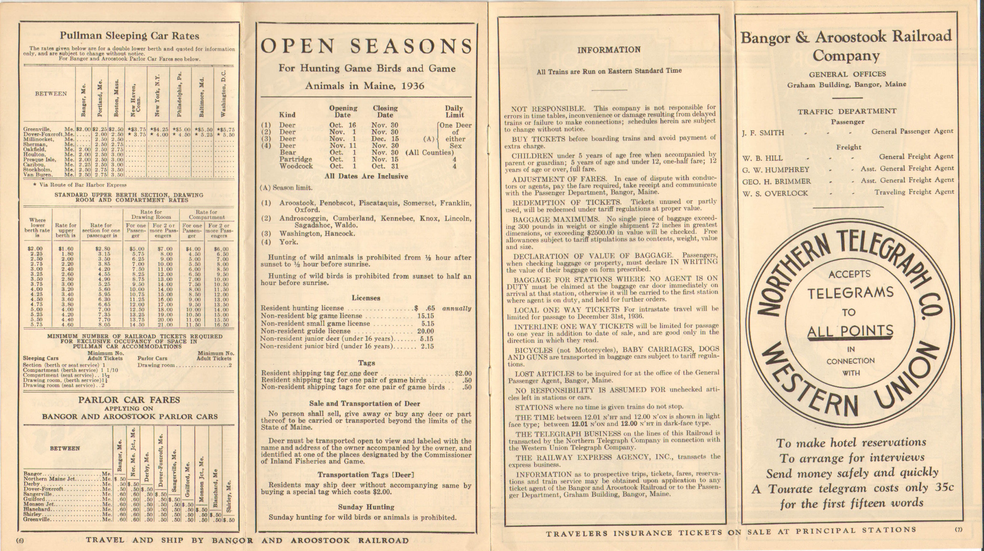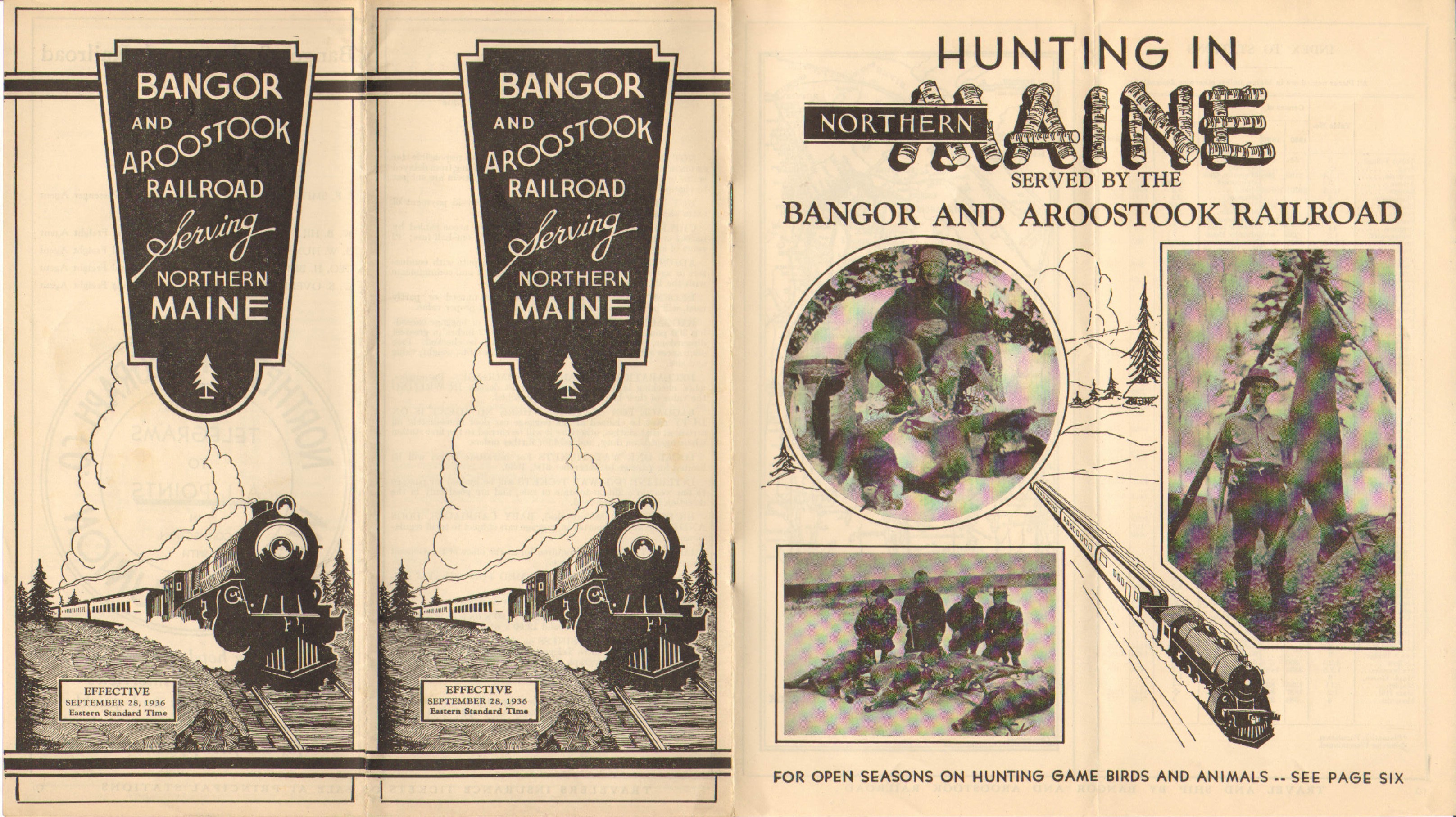 The front cover of this Timetable is essentially identical to the one immediately preceding it, but the inside cover has gone from vacationing to Hunting in Northern Maine. Information on hunting seasons is also included.